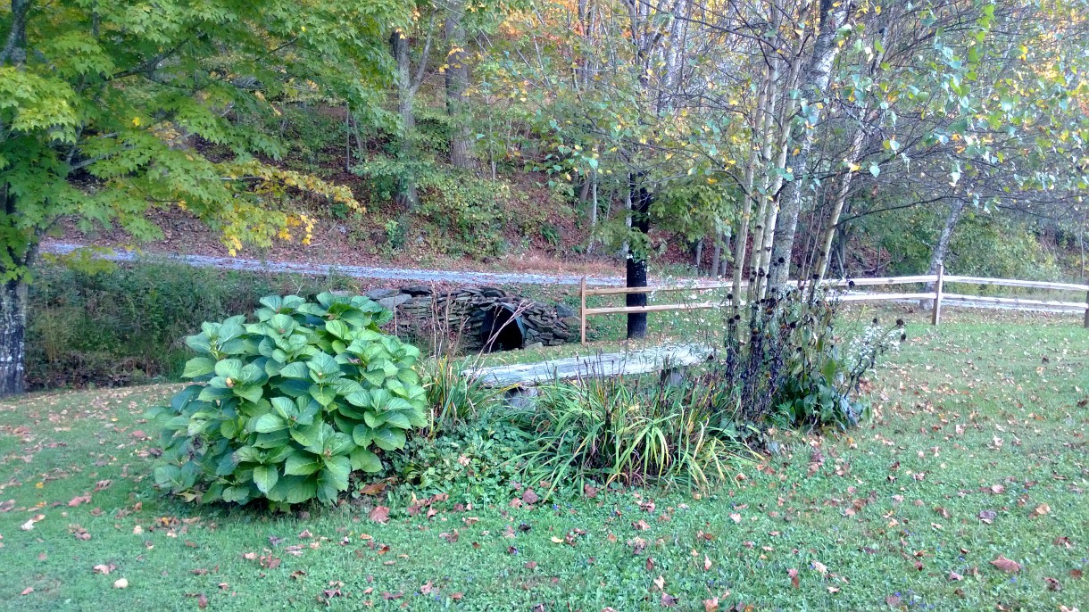 Amidst the thick fog, we pulled into the house (after only one wrong turn) a little after midnight, and gratefully collapsed. However, we shortly thereafter realized that we had no cell service anywhere near the house, and our families would be freaked out if we didn’t let them know we made it. So we unloaded the car off the trailer (Alex asked me to help guide him off the trailer, don’t tell him, but I couldn’t see anything!!! Yeah, looks good to me, keep it straight, keep it straight, oh hell, just gas it!), and drove with the phone out the window until a signal appeared, and let everyone know we’d barely escaped Sleepy Hollow alive and were home. Which, by the way, this is what’s out of our front door: